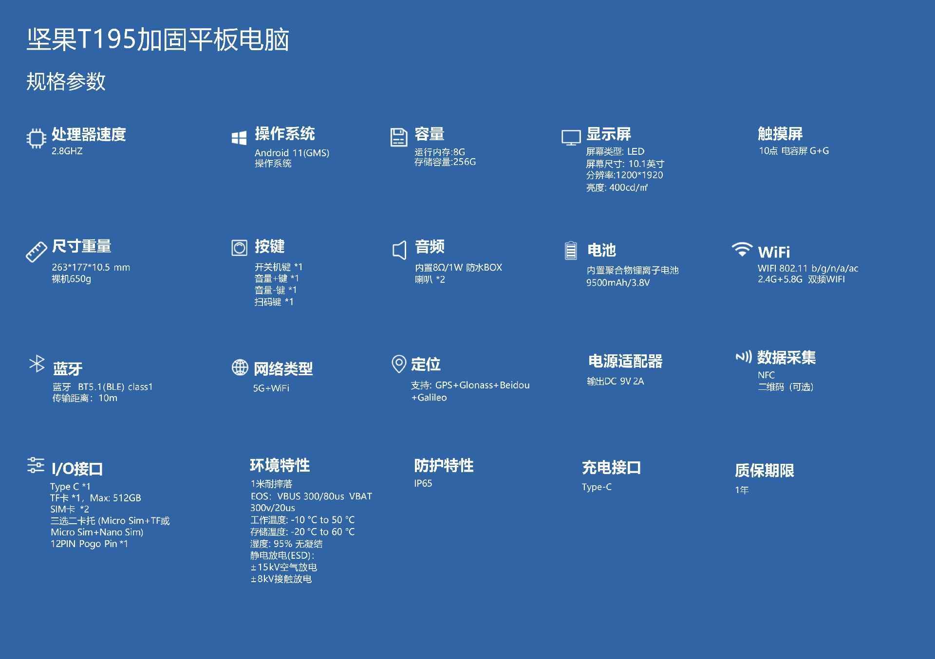 堅果T195 10.1英寸5G加固工業平板 IP65防護等級 智能制造專用